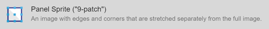 Click on the Click to add an Object area on the Objects tab to create your first object. The dialog box which opens shows the various types of objects. For our first object, let's choose a background. We use a Panel Sprite type of object for our background. A Panel Sprite type object can be stretched as required.